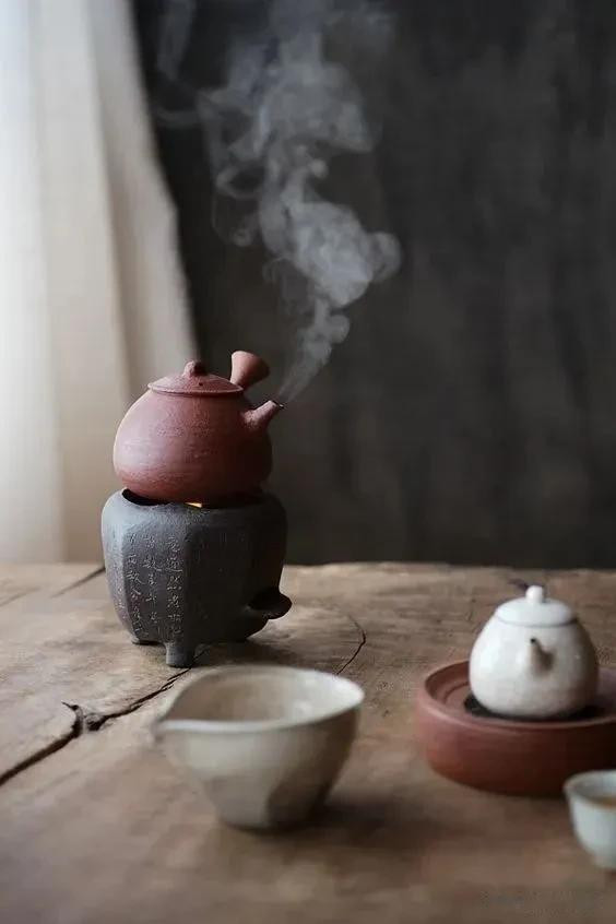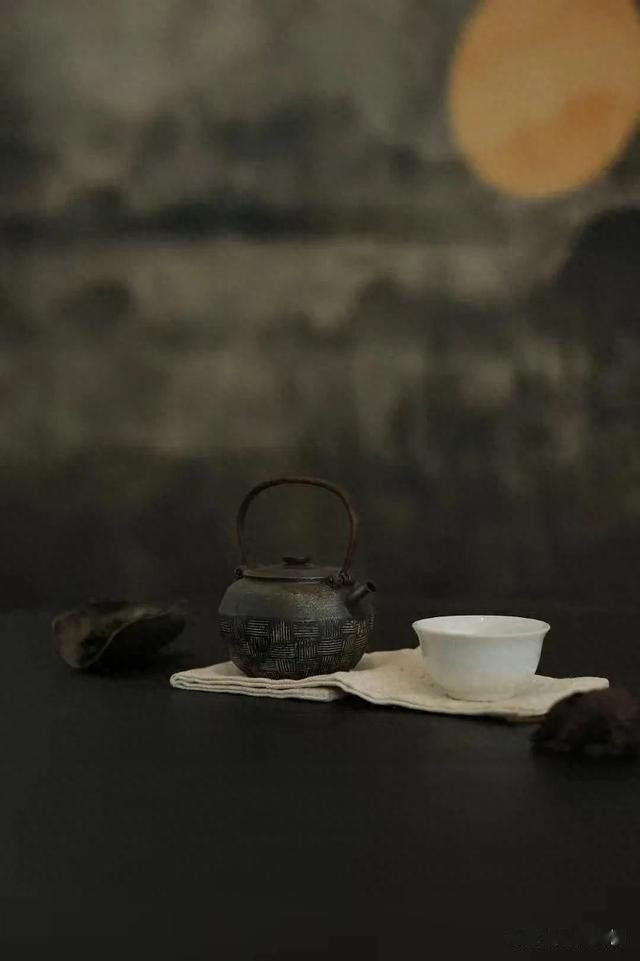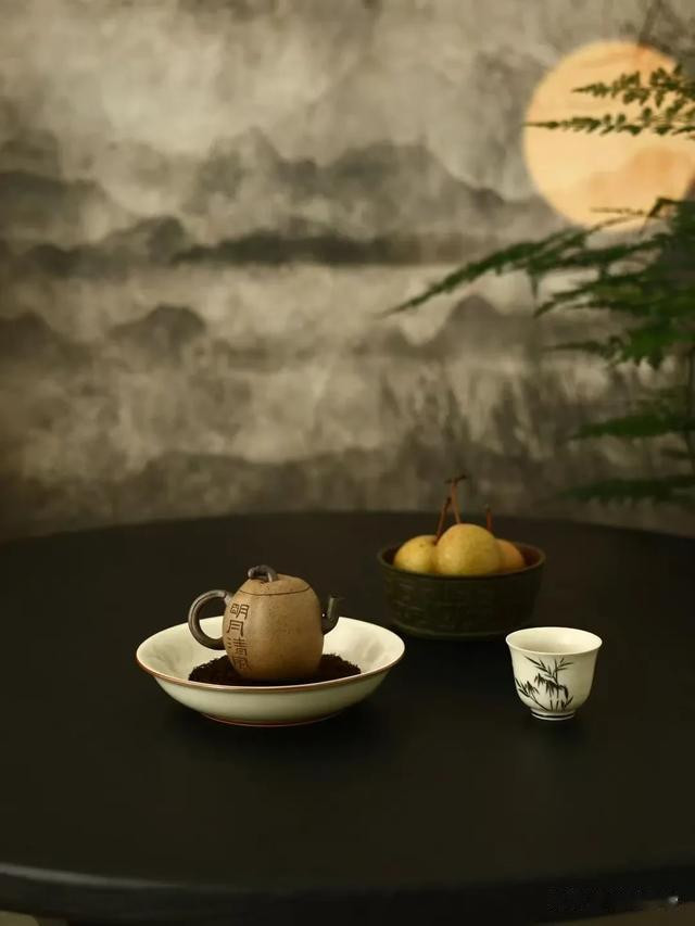 案头清雅,小小几尺,竟也铺陈开一方山水:茶壶静卧,杯盏如星,素白的茶席作底,便俨然如一方微缩的天地。紫砂壶古朴立于中央,壶身微润,形制敦厚,如一位久历沧桑的故友,早已褪尽了新器初成时的火气,沉稳地立于案头。我轻轻托起,那温润沉甸甸地栖于掌心,竟像无声托起了千年古意——那些前尘往事,那些澄澈心灵,在茶汤的流转中默默相续,如无字书卷,如无声之语,沉甸甸地栖于掌心。